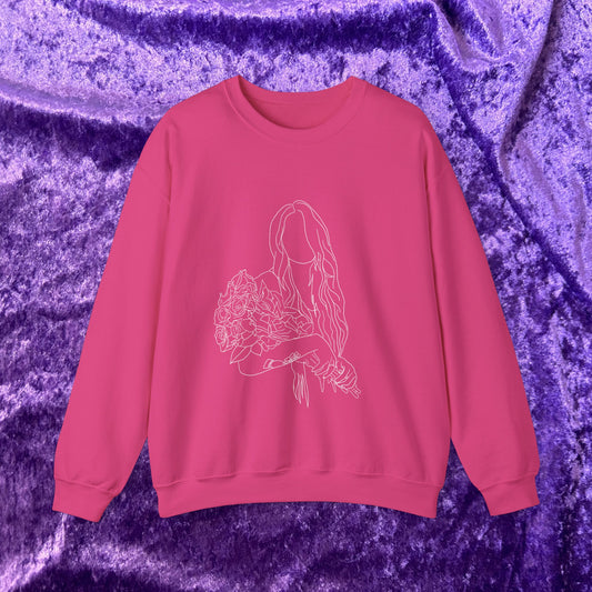 Unique Woman Holding Roses Sweatshirt – Unisex Heavy Blend Crewneck