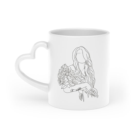 Outline of Woman Holding Roses – 11oz Coffee Mug with Heart-Shaped Handle
